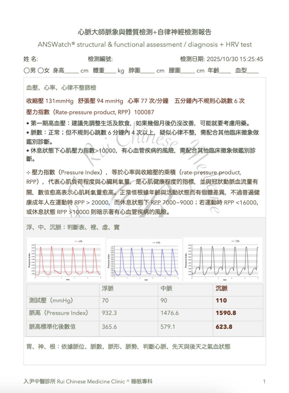 本檢測使用裝置:ANSWatch Wrist Monitor心脈大師®脈診儀