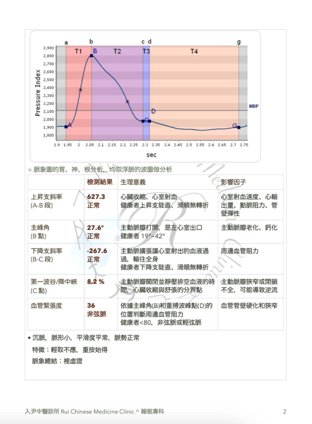 • 浮中沉脈波圖、浮中沉脈高、上昇支與下降支斜率、血管緊張度