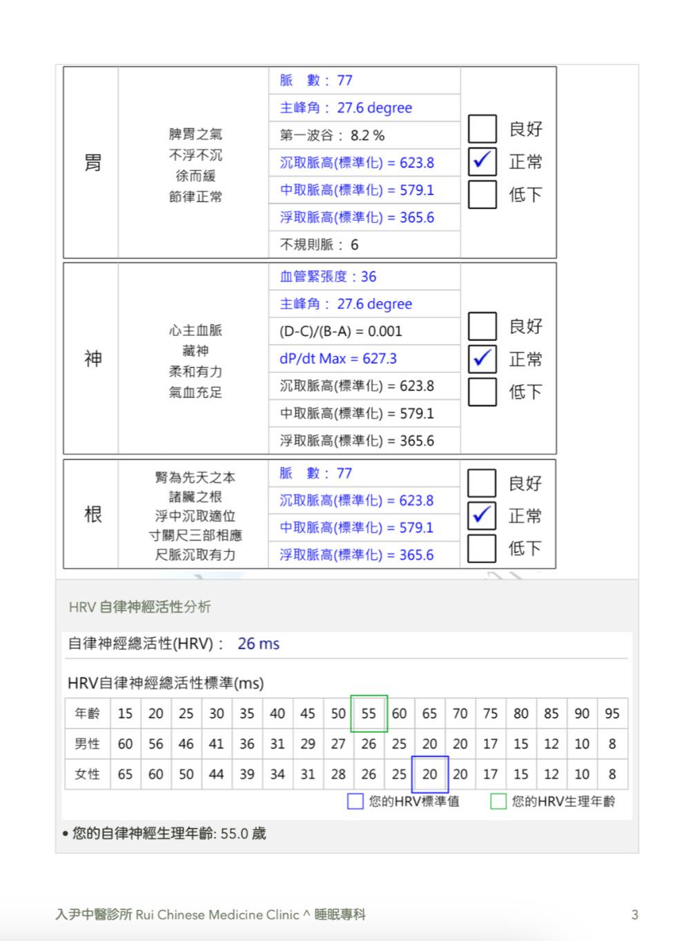 • HRV生理年齡(依據台灣人的數據資料)
