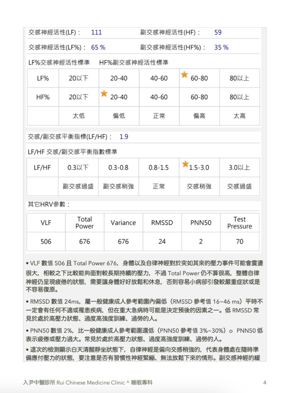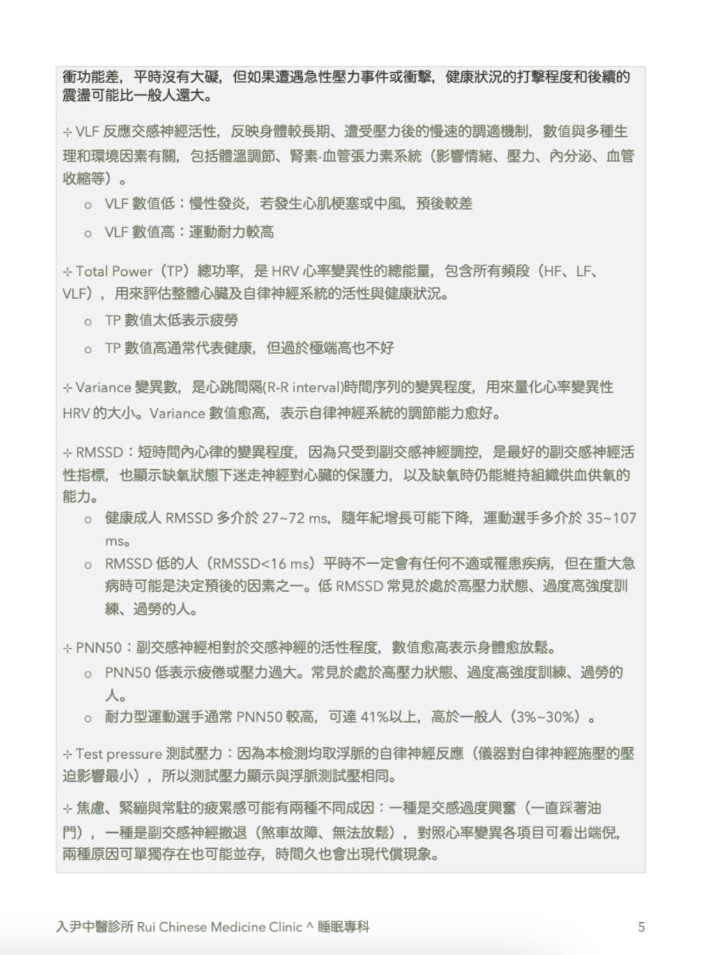 • 其它HRV參數:VLF、RMSSD、PNN50